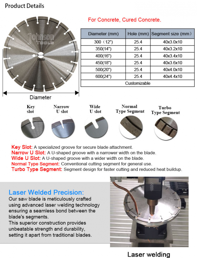 2. 高効率の500mmダイヤモンドターボソーブレード(硬化コンクリート用)の仕様情報